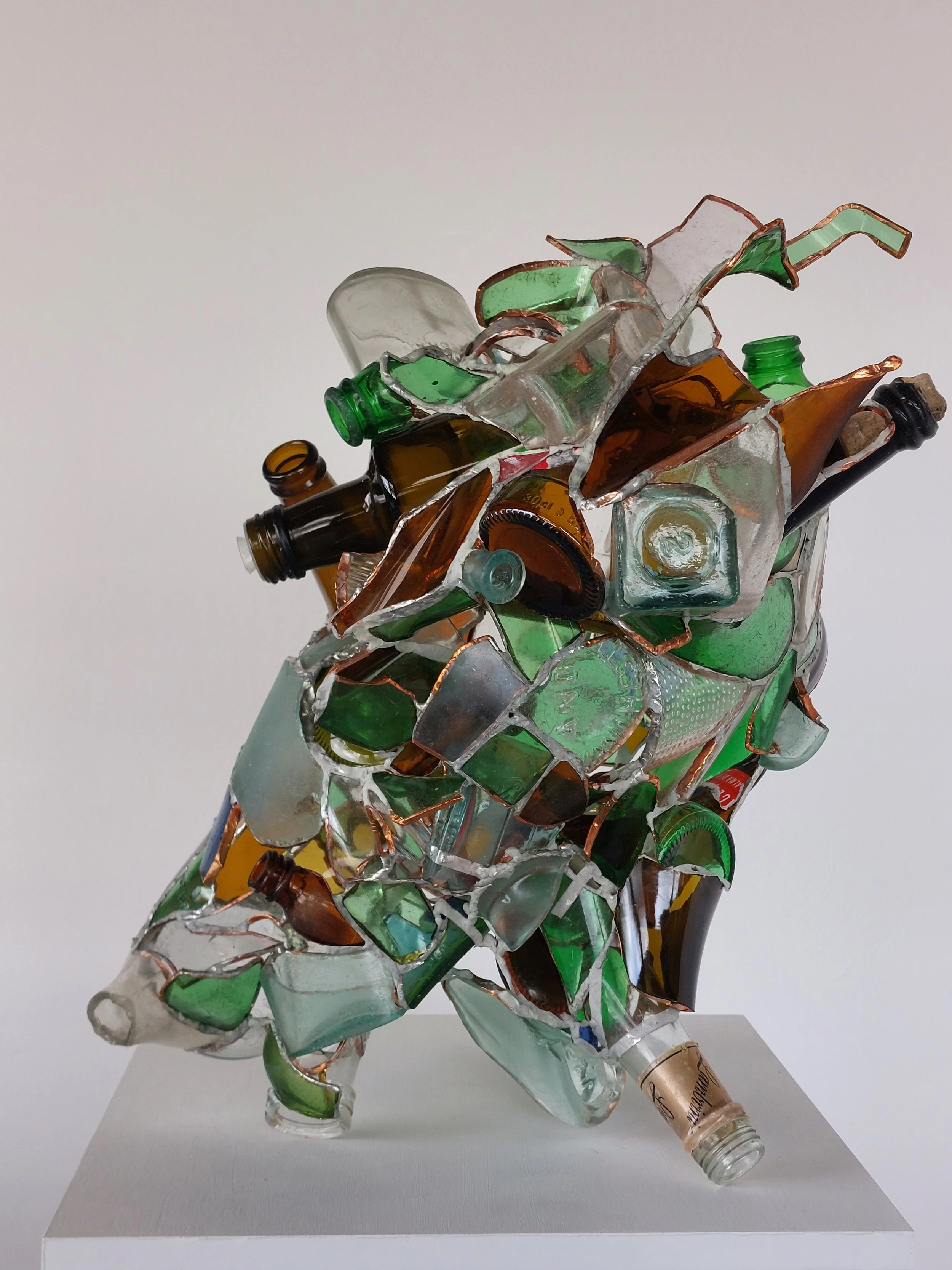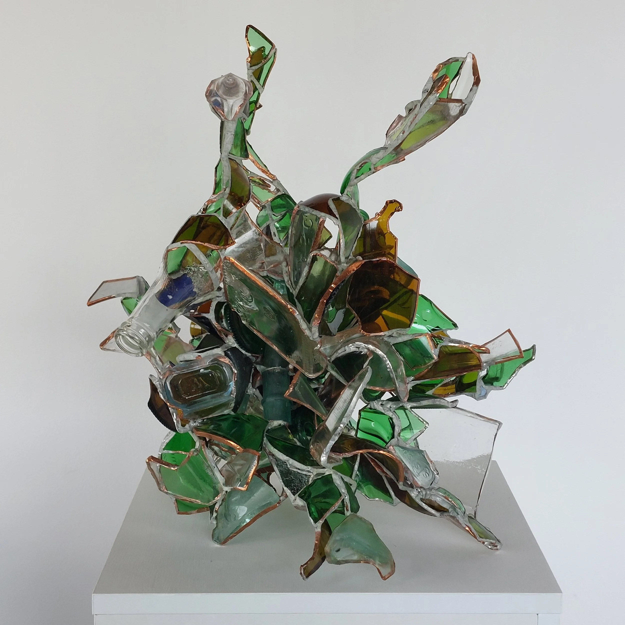 These sculptures are a continuation of attempts to highlight beauty in the everyday; by collecting discarded glass, a material often associated with value and reverence, yet found thrown away & shattered in the streets.